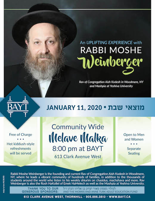 | Rav Moshe Weinberger Community Wide Melave Malka, 11 January 2020 |