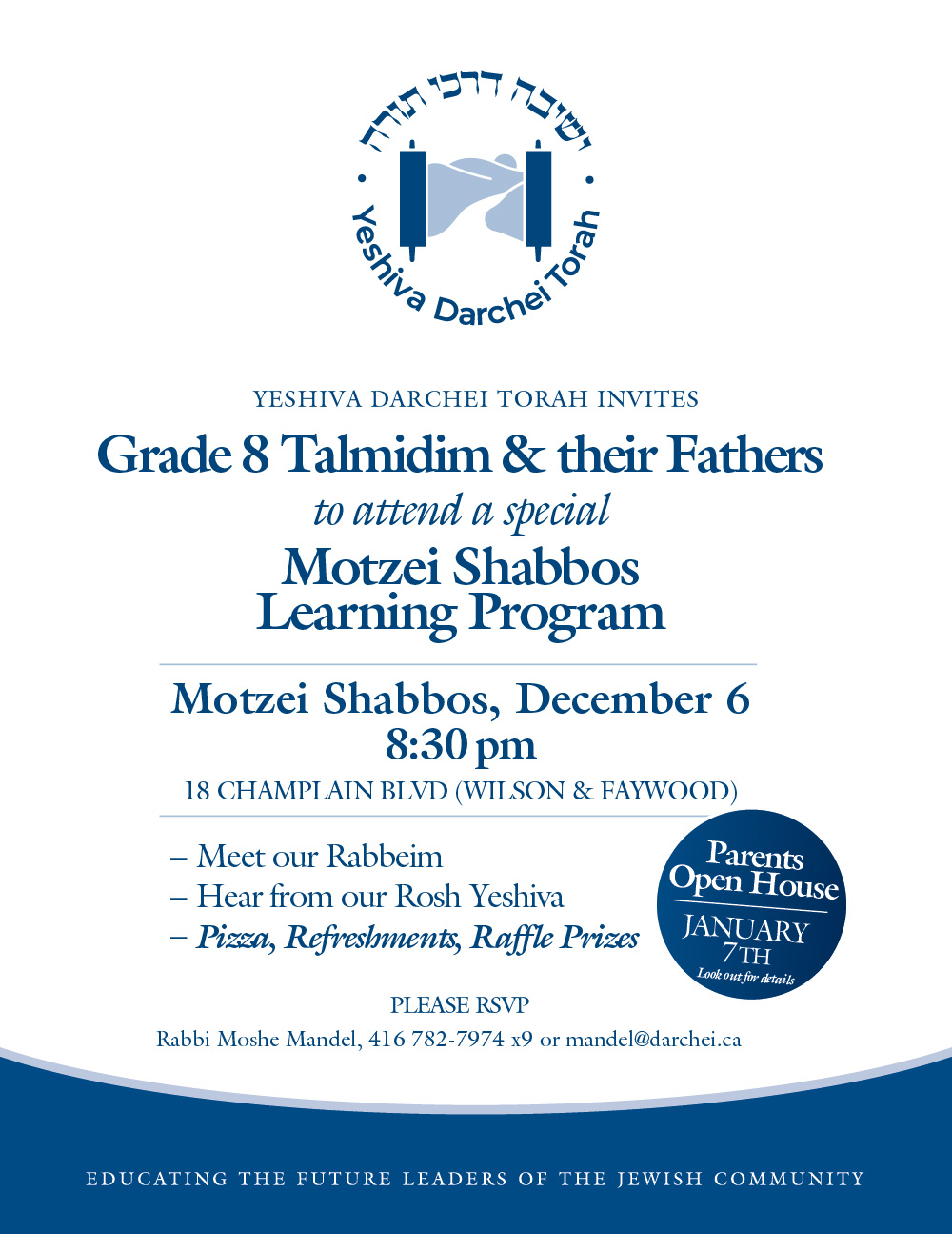 | Yeshiva Darchei Torah Grade 8 Father - Son Program, 6 December 2025 8:30pm |